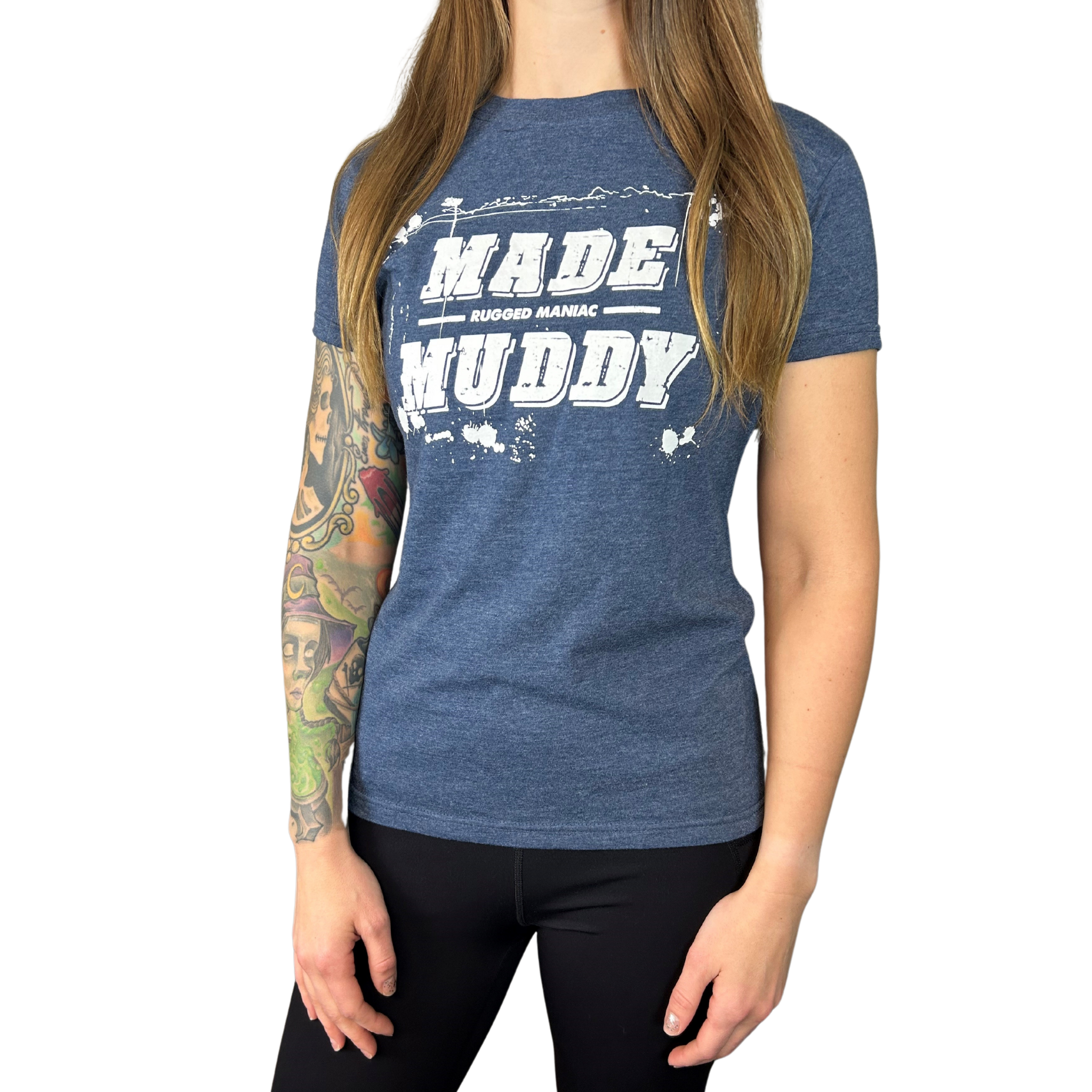 - Made Muddy tee fabric: 50% cotton, 50% polyester